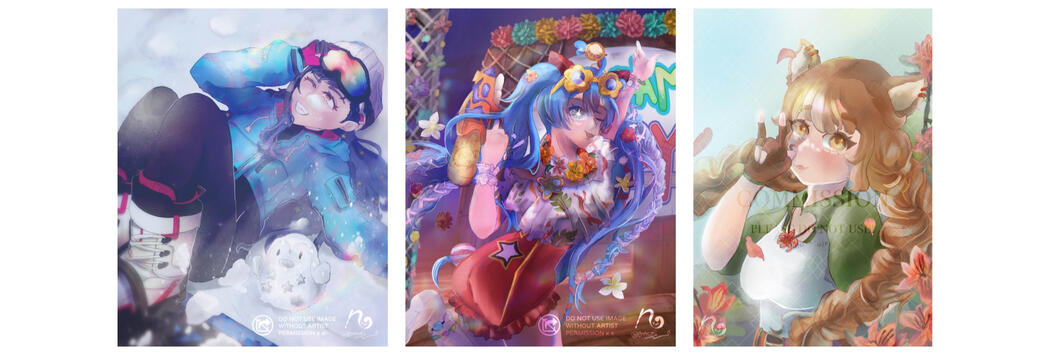 I mostly draw in an anime & chibi style. You can find more of my chibi artstyle in my merchandise section or check out my art album in FB (Nico Nicori)
